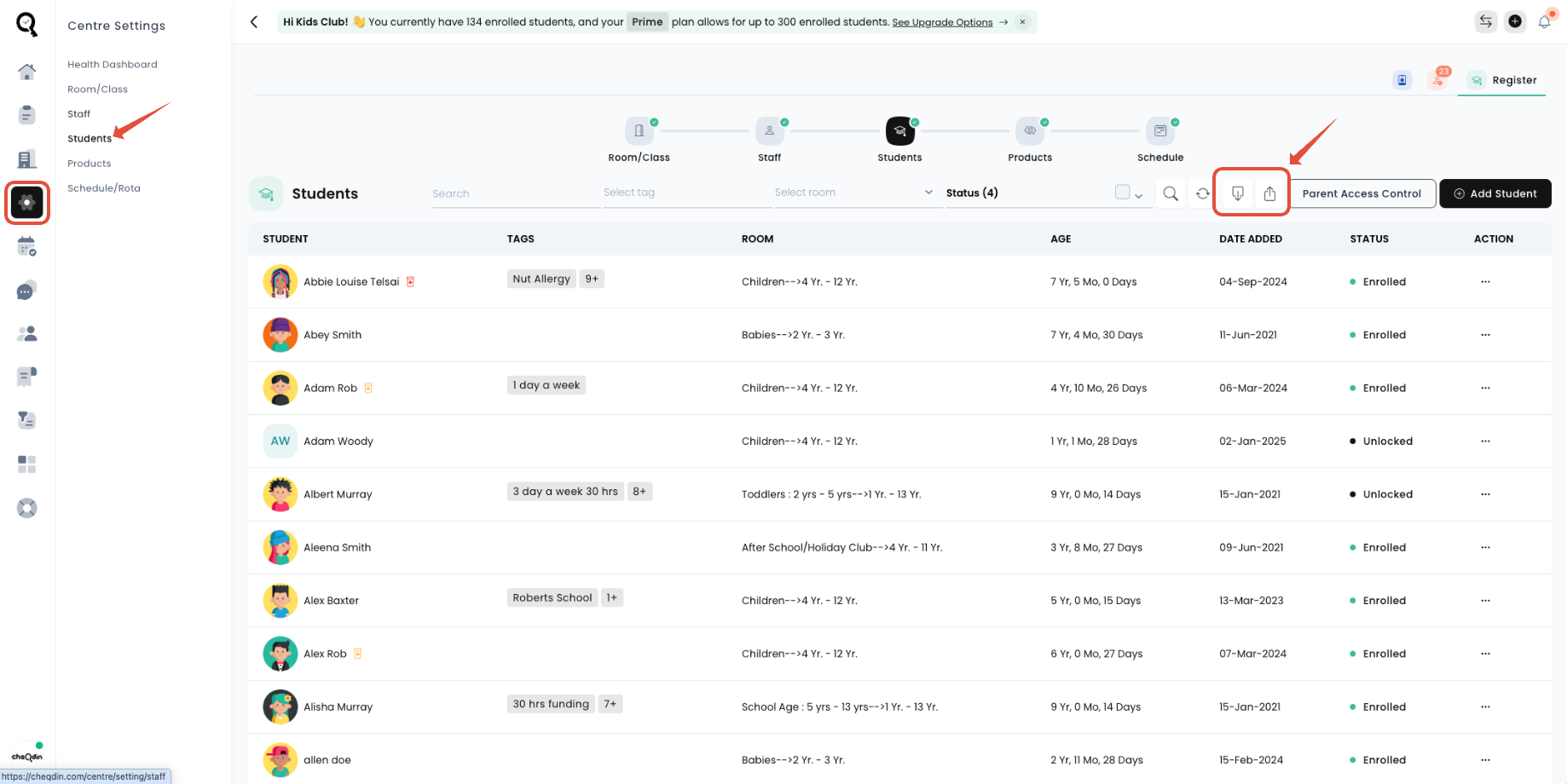 Cheqdin’s Student Register allows you to manage and access essential details about students enrolled at your center—all in one place.